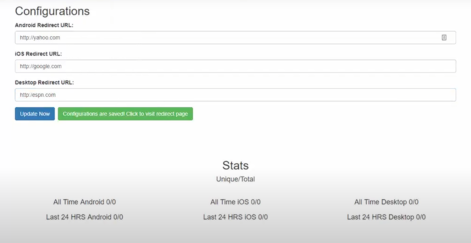 This system creates links that will deliver content that is made for their device. A user will click on a link and our system will detect the device and delver them to the pages you specify. Very good tool to deliver users to applicable app stores with one link!