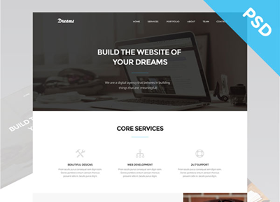 Dreams is a free PSD web template built by Example Person. Dreams is a modern one page web template designed for almost any purpose. It’s a beautiful template that’s designed with the Bootstrap framework in mind.